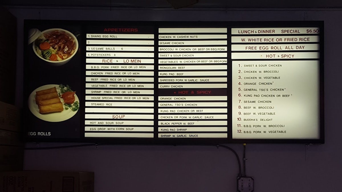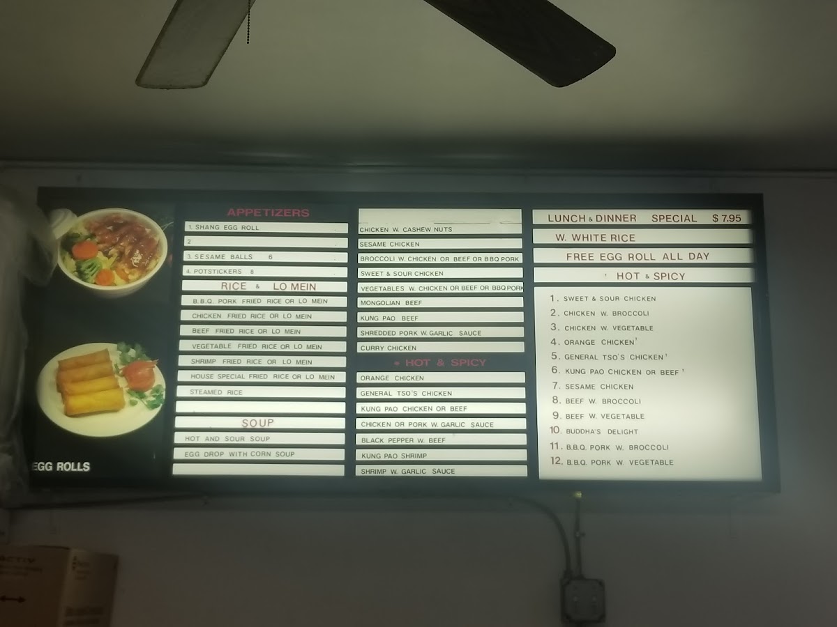 Shanghai Wok offers a diverse and flavorful menu that beautifully showcases the rich culinary traditions of Chinese cuisine. The Chicken section features popular dishes like General Tso's Chicken ($12.99), a tangy, crispy chicken dish with a sweet and savory sauce, and Kung Pao Chicken ($11.99), known for its spicy, savory kick. For those seeking a milder option, Chicken With Vegetables ($11.50) and Sweet & Sour Chicken ($11.99) offer a lighter yet satisfying choice. The Rice menu is equally enticing with options such as the classic Steamed Rice ($2.50) and the flavorful Shrimp Fried Rice ($12.99). For something more indulgent, the House Special Fried Rice ($14.50) offers a hearty combination of meats and veggies.